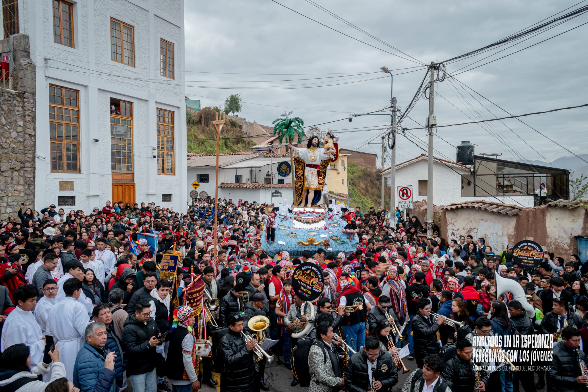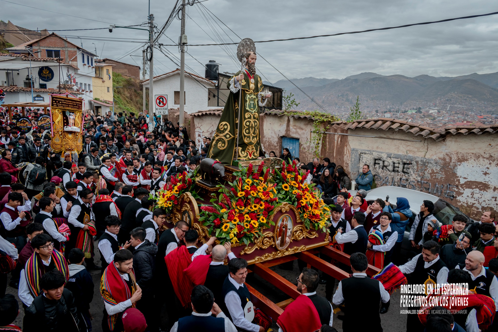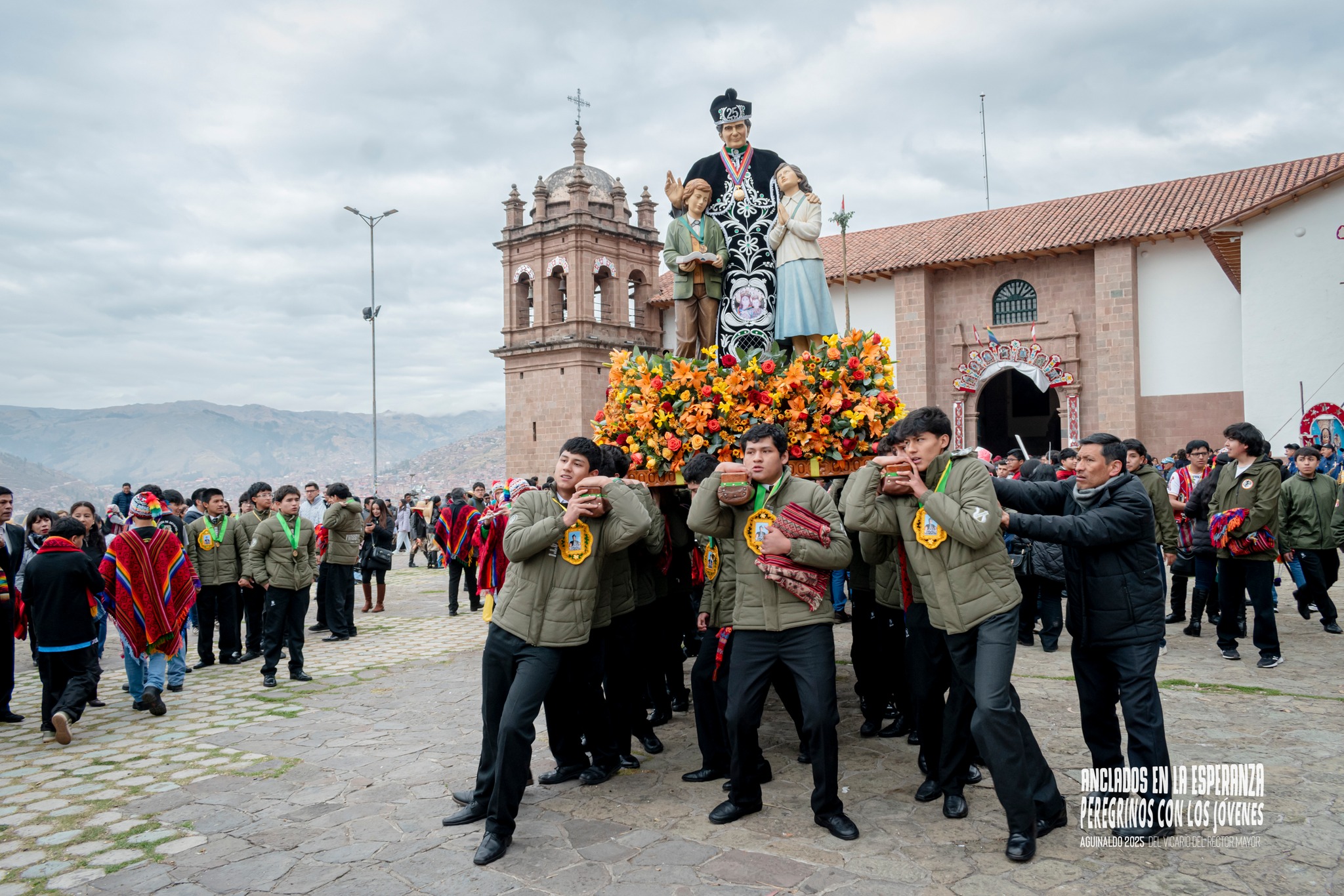 Desde tempranas horas de la mañana, la familia salesiana partió desde el colegio hacia la Parroquia de San Cristóbal, donde se celebró la Santa Eucaristía con la presencia de nuestros educandos, exalumnos y fieles devotos. La Promoción Pier Giorgio Frassati 2025 tuvo el honor de llevar en andas a Don Bosco, símbolo de nuestra misión evangelizadora y educativa. También acompañaron y cargaron al patrón San Cristóbal, en un gesto de comunión con el pueblo cusqueño.